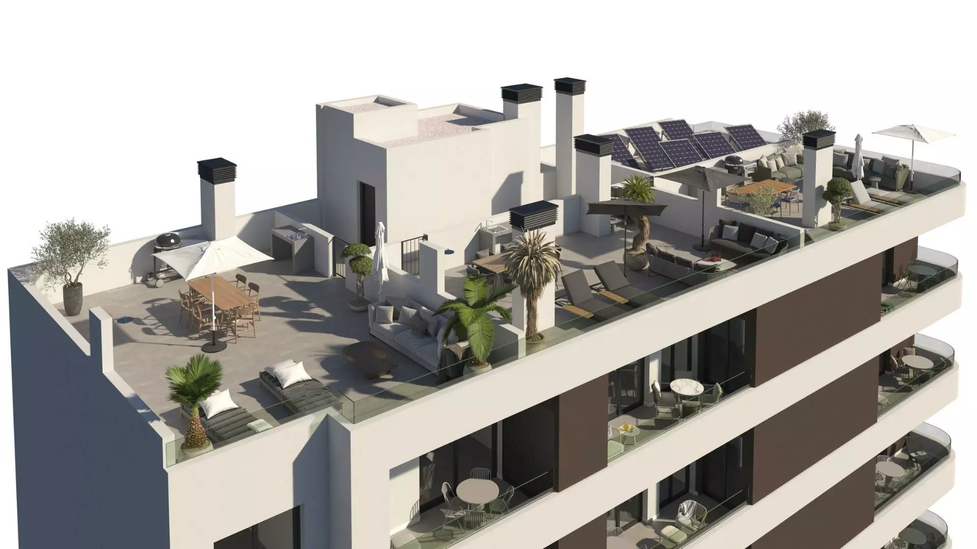 This exclusive new development is located in the vibrant center of Santa Pola, one of the coastal towns in the province of Alicante. Just 500 meters from the beach and the marina, residents can enjoy the Mediterranean lifestyle with everything at their doorstep. Alicante city is only 20 km away, and Alicante-Elche International Airport is just 15 km, providing excellent connectivity.