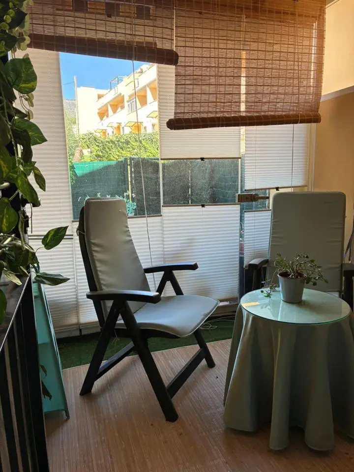 La vivienda incluye un dormitorio principal equipado con una cama de matrimonio, además de un segundo dormitorio que cuenta con dos camas individuales. Desde este segundo dormitorio tienes acceso a una terraza, que se divide en una parte cubierta con Lumon y otra al aire libre. Este espacio es ideal para reuniones o para disfrutar de momentos al exterior.