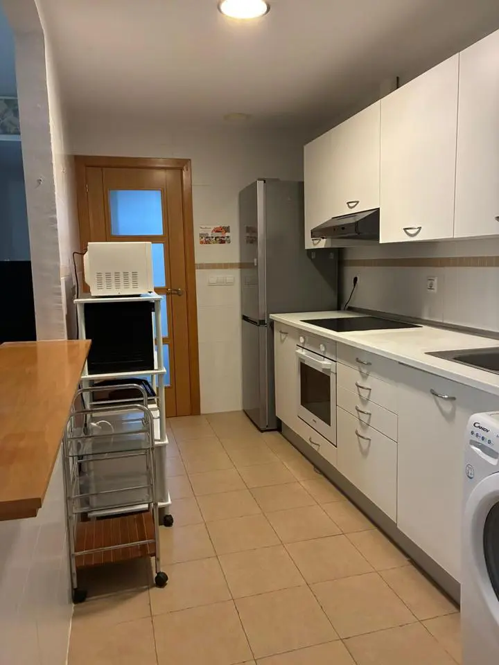 La cocina está integrada en un salón amplio y luminoso, facilitado por un ventanal tipo barra. Esta disposición no solo incrementa la sensación de amplitud, sino que también añade comodidad a la vida diaria.