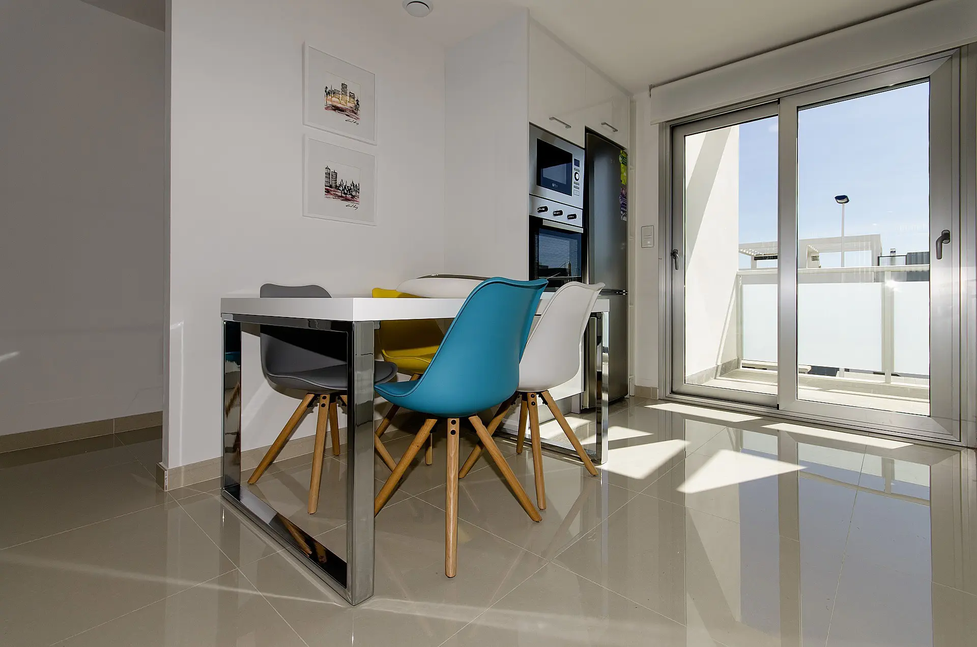 The residential complex enjoys easy access to the city of Torrevieja and its many amenities. It is conveniently located near several supermarkets and just a short distance from the shops at Zenia Boulevard. For golf enthusiasts, there are four golf courses within close proximity, enhancing the appeal of this location.