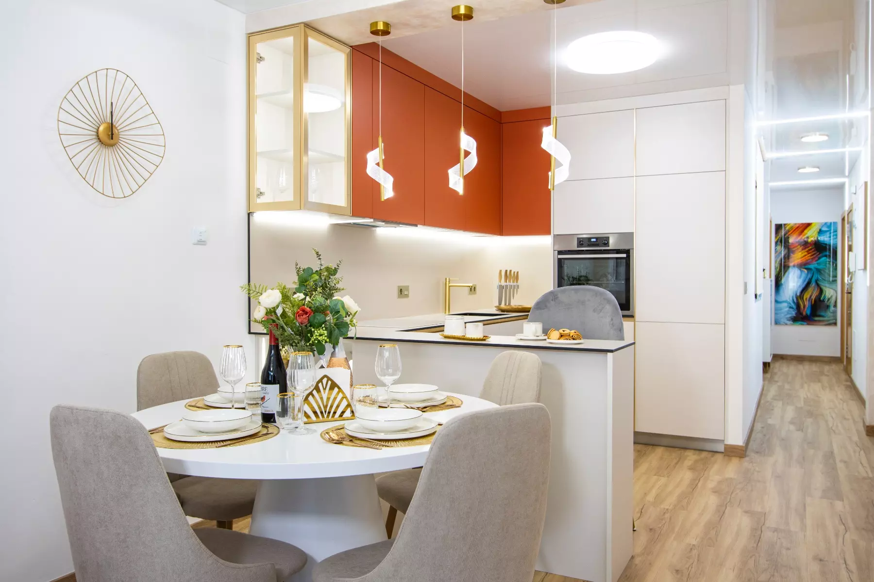 The flat features two bedrooms and one bathroom, making it suitable for individuals or small families. The integrated kitchen is designed to flow into the living room, creating a cohesive space for everyday activities. One notable highlight is the glazed terrace, which can serve as an additional area for relaxation.