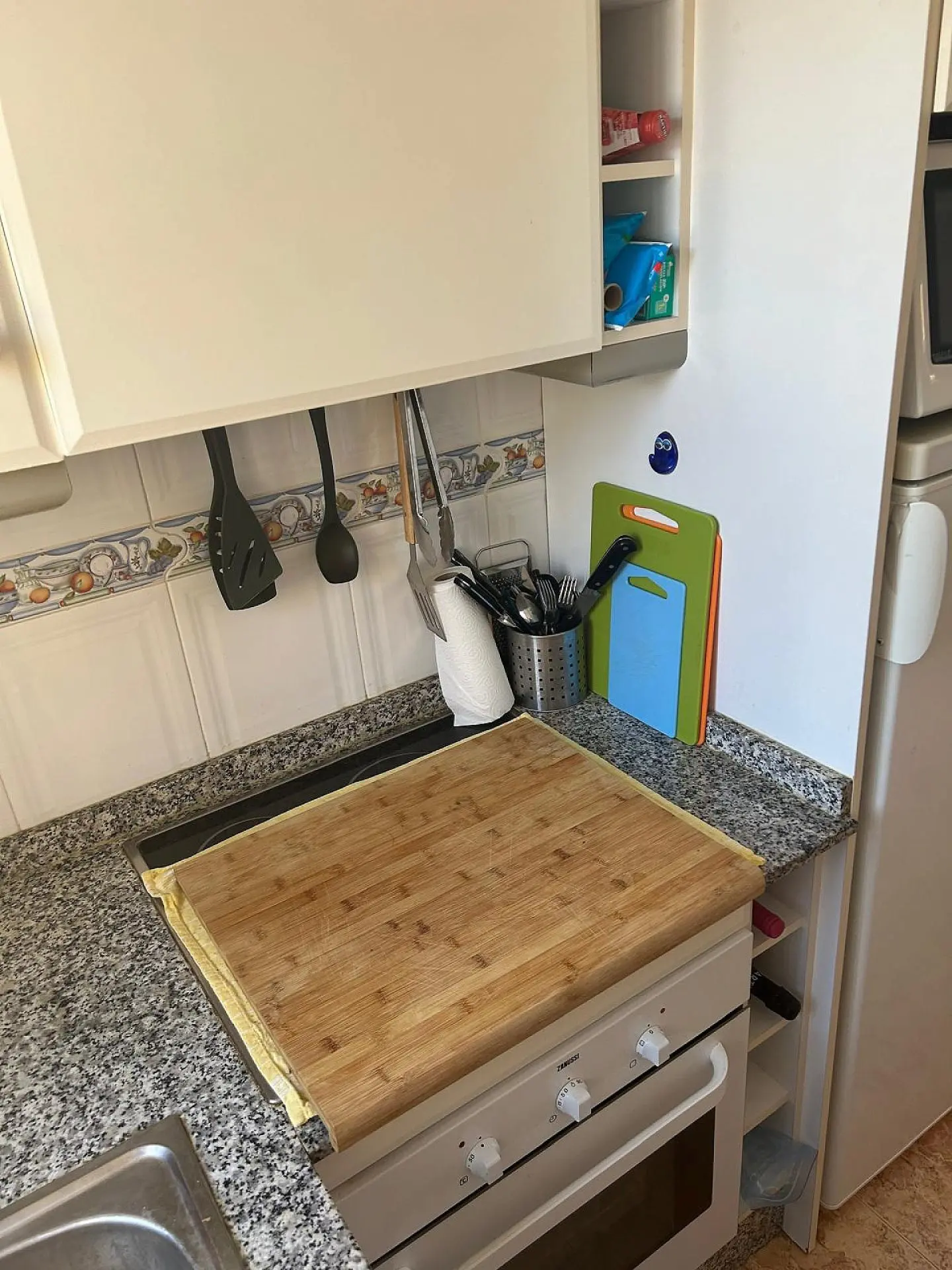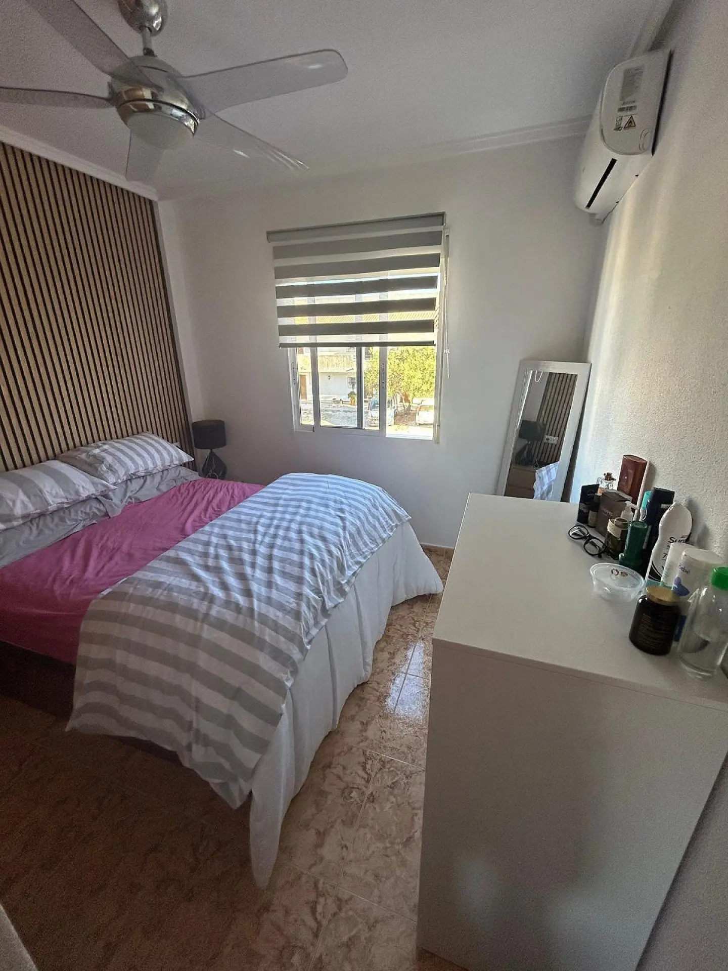 The apartment comes equipped with a new pellet burner, air conditioning, and ceiling fans in all rooms. There is a balcony off the living room, which faces south. This ensures ample natural light throughout the day, contributing to a pleasant atmosphere inside the apartment.