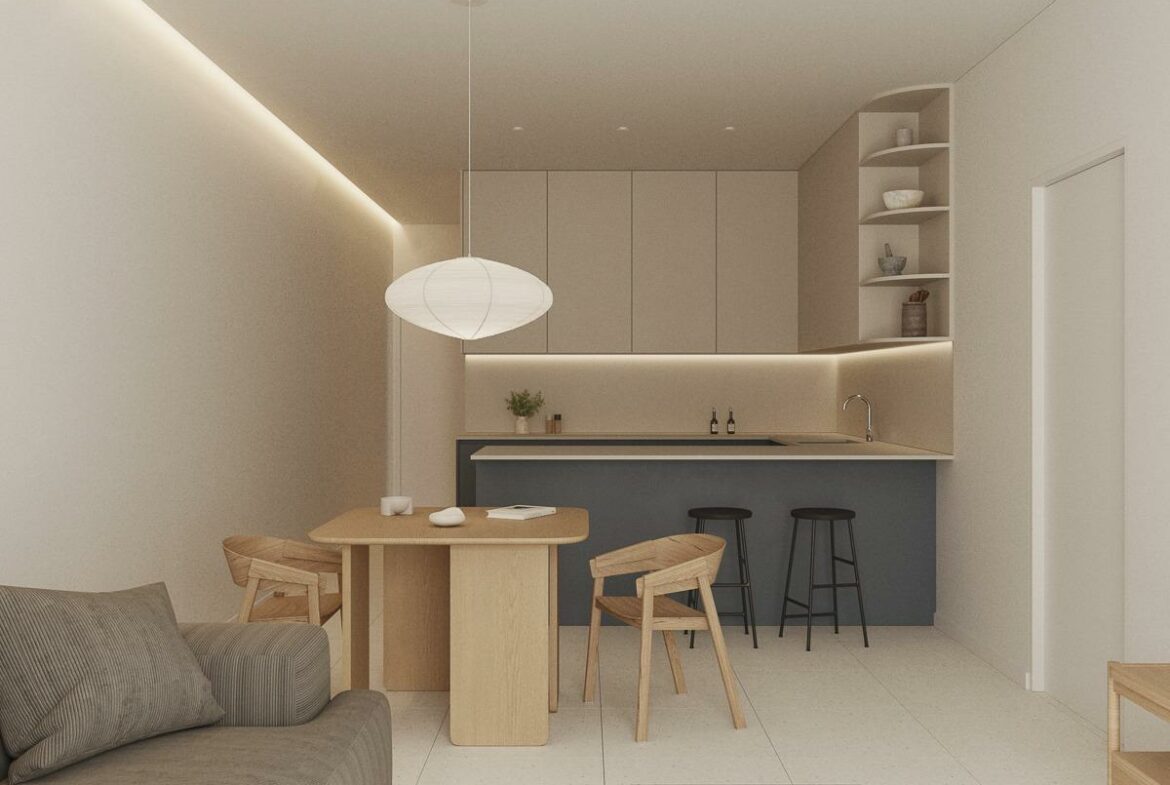 These apartments offer the choice between 1 or 2 bedrooms, each equipped with 2 bathrooms, including one en-suite. The open layouts are designed to maximize both space and natural light, prioritizing functionality and comfort. The development includes premium finishes such as security entrance doors, fitted wardrobes with textile finishes, aluminum carpentry featuring thermal breaks, and motorized shutters in the living room. The kitchens and bathrooms come with high-quality fixtures, including shower screens and built-in mirrors. Pre-installed ducted air conditioning provides a comfortable environment throughout the year.