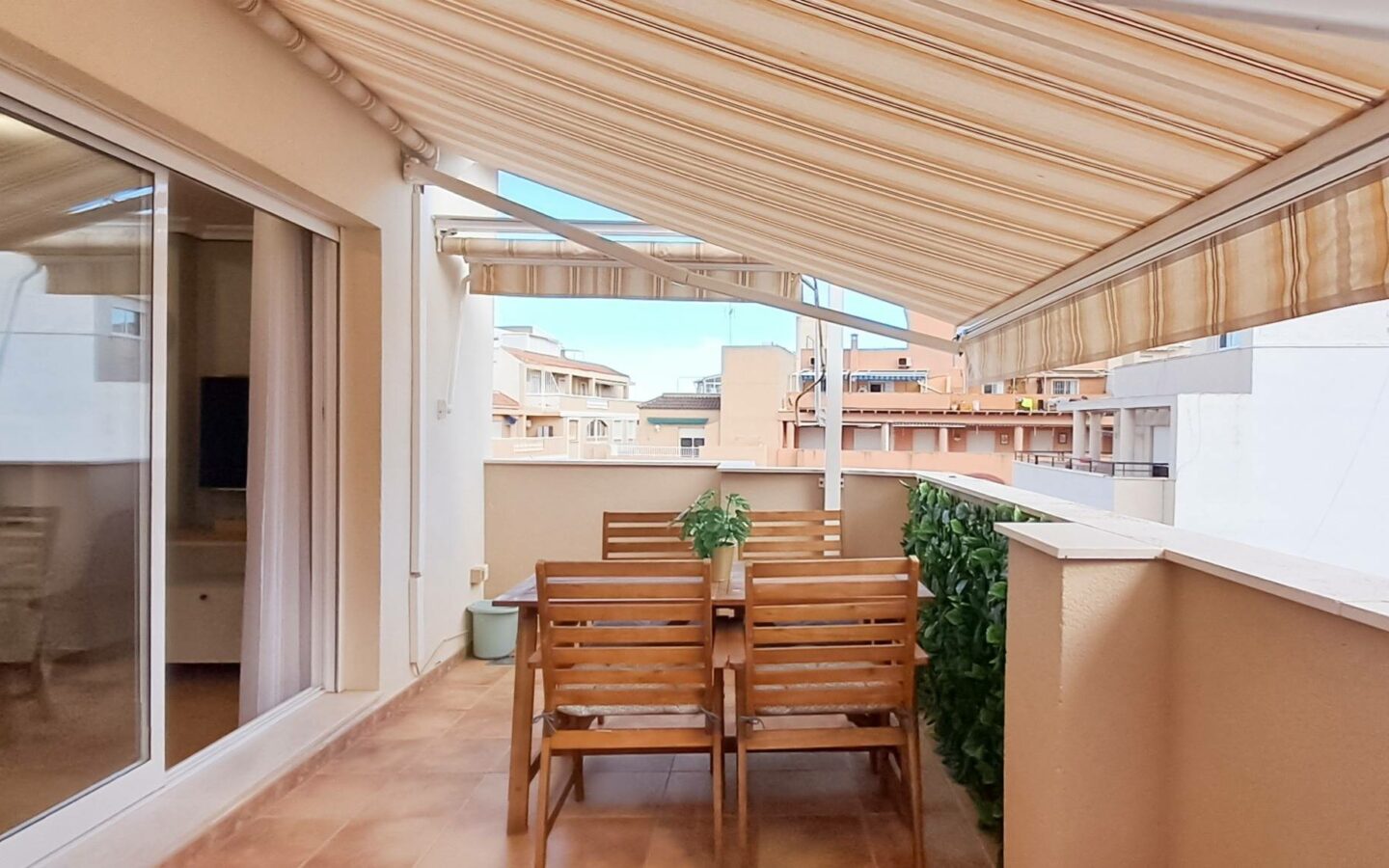 The spacious balcony serves as an extension of the living area. It’s suitable for various outdoor activities, whether that is dining al fresco or simply relaxing outdoors. This additional space makes it easier to enjoy the benefits of the Mediterranean climate.