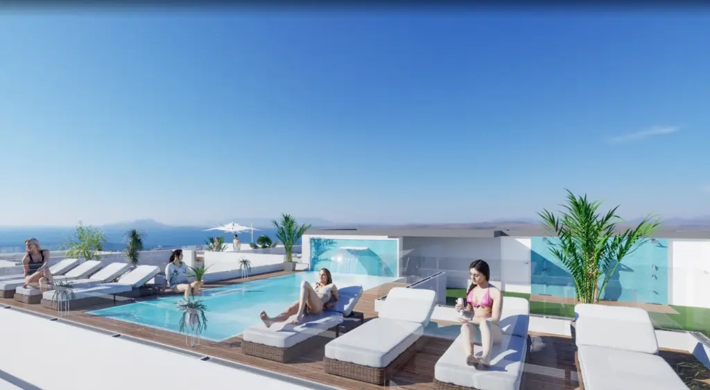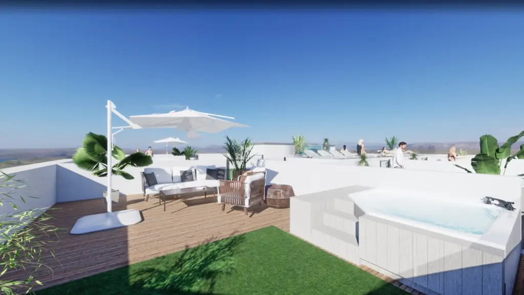 The layout of these apartments includes ample space for daily living. The design offers two bedrooms, making it suitable for individuals, couples, or small families. The living room serves as a central area for relaxation or entertaining guests, while the kitchen provides essential cooking amenities. The terrace extends your living space outdoors, allowing for fresh air and sunshine.