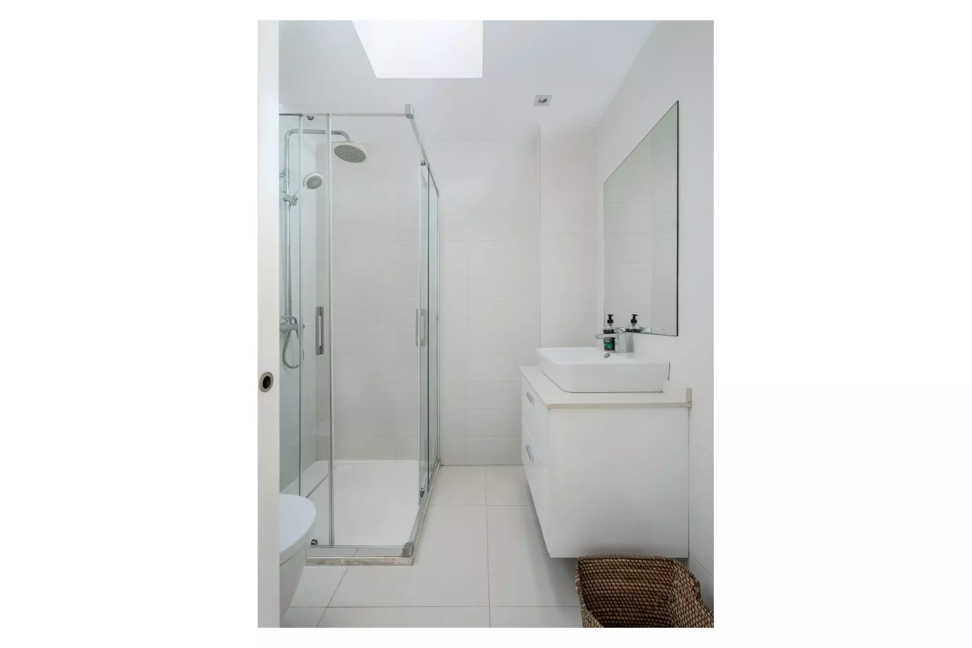 The open-plan design of the living room and kitchen fosters a connected atmosphere. The kitchen comes equipped with integrated appliances and a breakfast bar. The living room features large windows that enhance the brightness of the space. From there, access to the terrace is straightforward, along with an external staircase leading to the expansive 72 m² roof terrace.