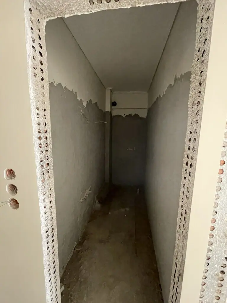This apartment consists of two bedrooms, a living room with an integrated kitchen, and one bathroom. The front layout offers a straightforward living arrangement that maximizes space and functionality. Property buyers may appreciate the practical design as it allows for efficient use of every square meter.