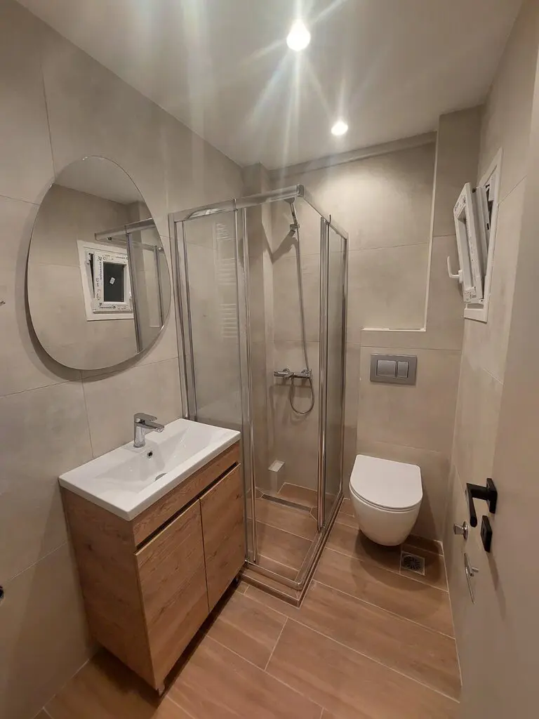 This unit consists of 2 bedrooms along with a living room that includes a kitchen area. The layout is designed for efficiency, ensuring that you can utilize the space effectively. Additionally, there is one shower WC, catering to everyday needs.