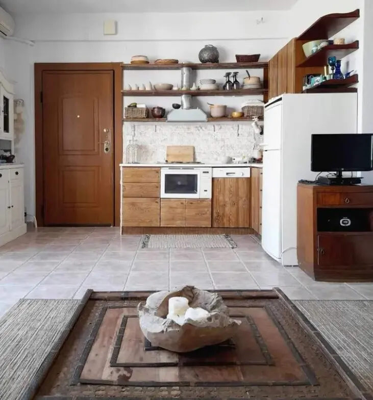 The apartment’s configuration includes a total of two bedrooms. This design can cater to various living arrangements, whether for small families or individuals looking for additional space. The integration of the living room with the kitchen allows for a more open and versatile living environment.