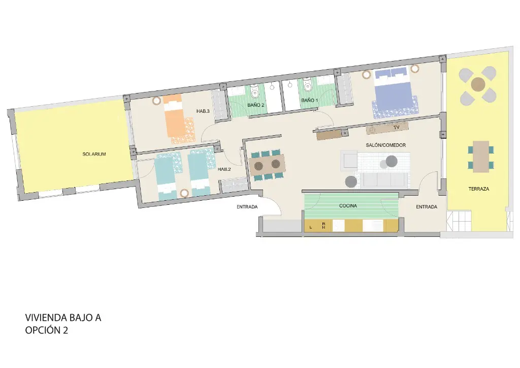 For outdoor enthusiasts, the ground floor apartments come with terrace spaces. These terraces are oriented in various directions to ensure sunlight is available throughout the year, allowing for an enjoyable outdoor experience at any time. If you prefer higher elevations, the top-floor units include private solariums, perfect for relaxation or entertaining guests under the open sky.