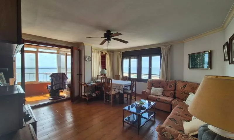 This apartment is located in the Navamares Building, positioned directly on the front line of Acequión Beach. This area is known for its solid construction and favorable location, providing direct views of the Mediterranean Sea. Being just a five-minute walk from the center of Torrevieja adds to the appeal, allowing easy access to various amenities.