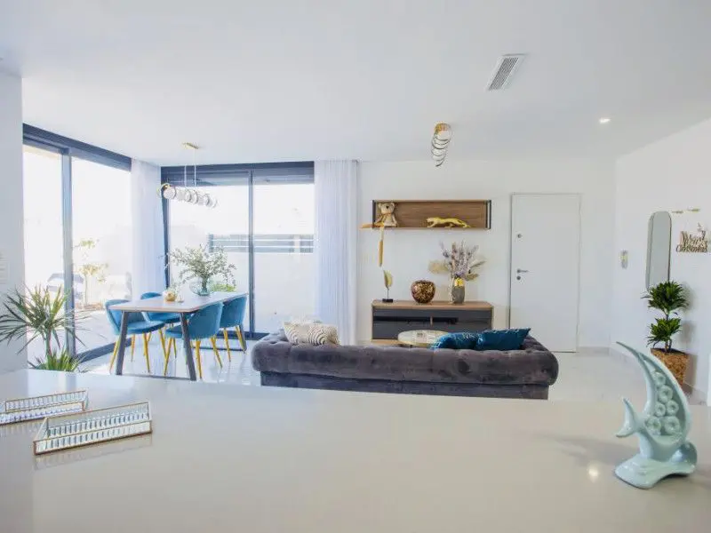 These two-story villas are situated on the periphery of Alicante, specifically in Los Montesinos. The properties are set on extensive plots and provide views of the salt lakes. The area benefits from a favorable climate year-round and offers proximity to essential amenities such as supermarkets, bars, and restaurants. The traditional Spanish village of Los Montesinos is a short distance away, providing opportunities to experience local culture.