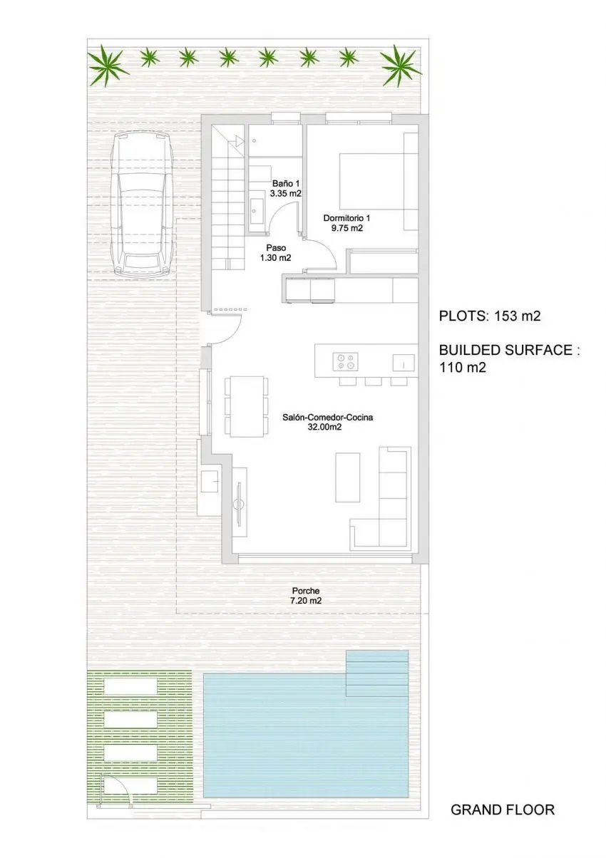 NEW BUILD VILLAS IN SAN JAVIER New Build project of detached villas in San Javier. New Build villas are distributed over two floors plus the spacious roof terrace with beautiful views of the surroundings. On the ground floor there is a bright living room with open plan kitchen and access to the terrace, a double bedroom with fitted wardrobe and a bathroom. On the first floor there are 2 spacious bedrooms, one with built-in wardrobe and the other one with dressing room and bathroom en suite. Private garden with the pool and parking space. San Javier is close to all amenities with easy access to the beach, water sports, shops and the transport network. Here you can enjoy all of the facilities that San Javier has to offer such as the local shops, bars and restaurants as well as being near to shopping centres, the airport of Murcia and all of the beautiful places to be found along the Mar Menor. Corvera/Murcia airport is 30 minutes away and Alicante airport is 45 minutes away.