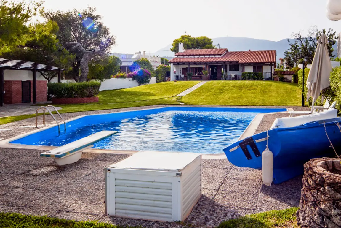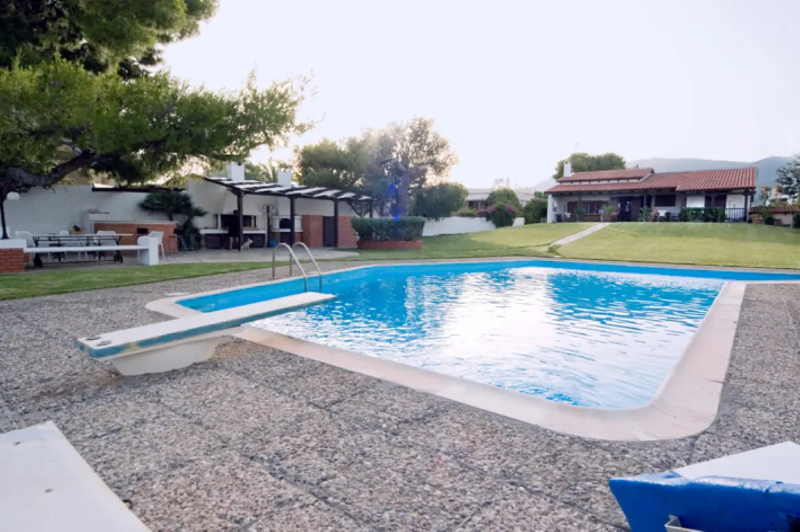 A significant highlight of this villa is the view it offers. From the windows, you can see both the sea and the mountains, providing a scenic backdrop. Additionally, the property includes a private swimming pool for personal use and a barbecue area, catering to outdoor activities and leisure time.