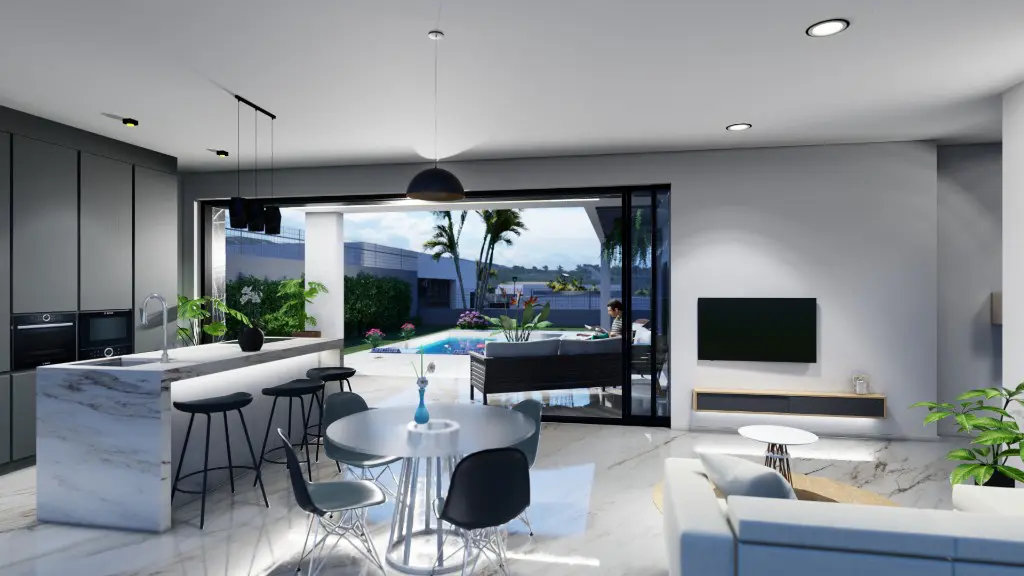 New villas in AlgorfaWe offer new build villas directly from the builder in a luxury area in the south of the Costa Blanca. The houses have 3 bedrooms, 2 bathrooms, living room with dining area, modern style kitchen, private pool and parking inside the plot.Algorfa is located on the Costa Blanca, 40 minutes’ drive from Alicante & Murcia Airports. The beaches of Guardamar del Segura and Torrevieja are only 20 minutes away from La Finca by car.You will have well developed infrastructure with many shops, restaurants and bars, pharmacy and bank offices.