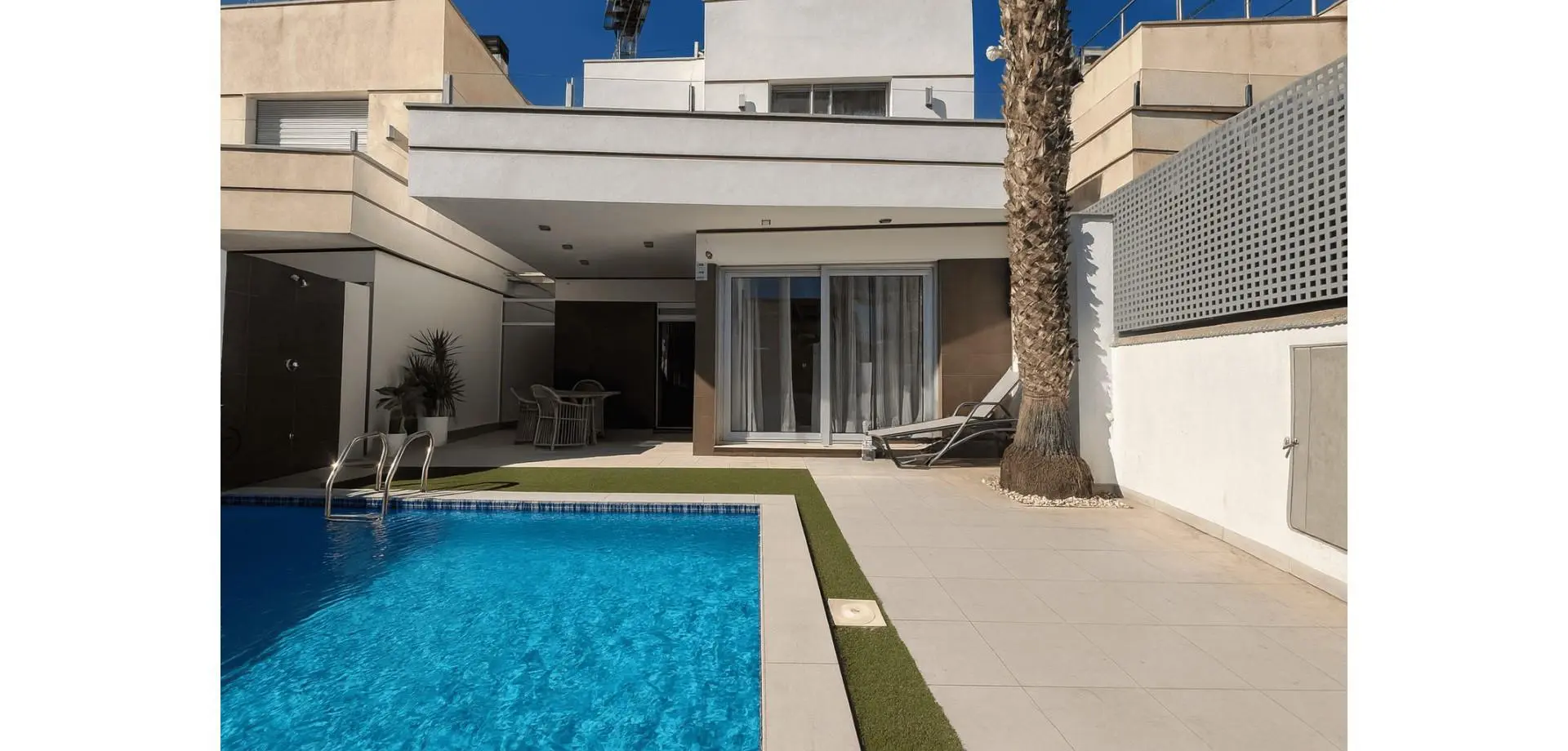 Discover this beautifully maintained detached villa located in the sought-after area of Lomas de Cabo Roig / Los Dolses, Orihuela Costa. Built in 2016, this modern home offers 125 m2 of space across three floors, set on a 230 m2 plot.
