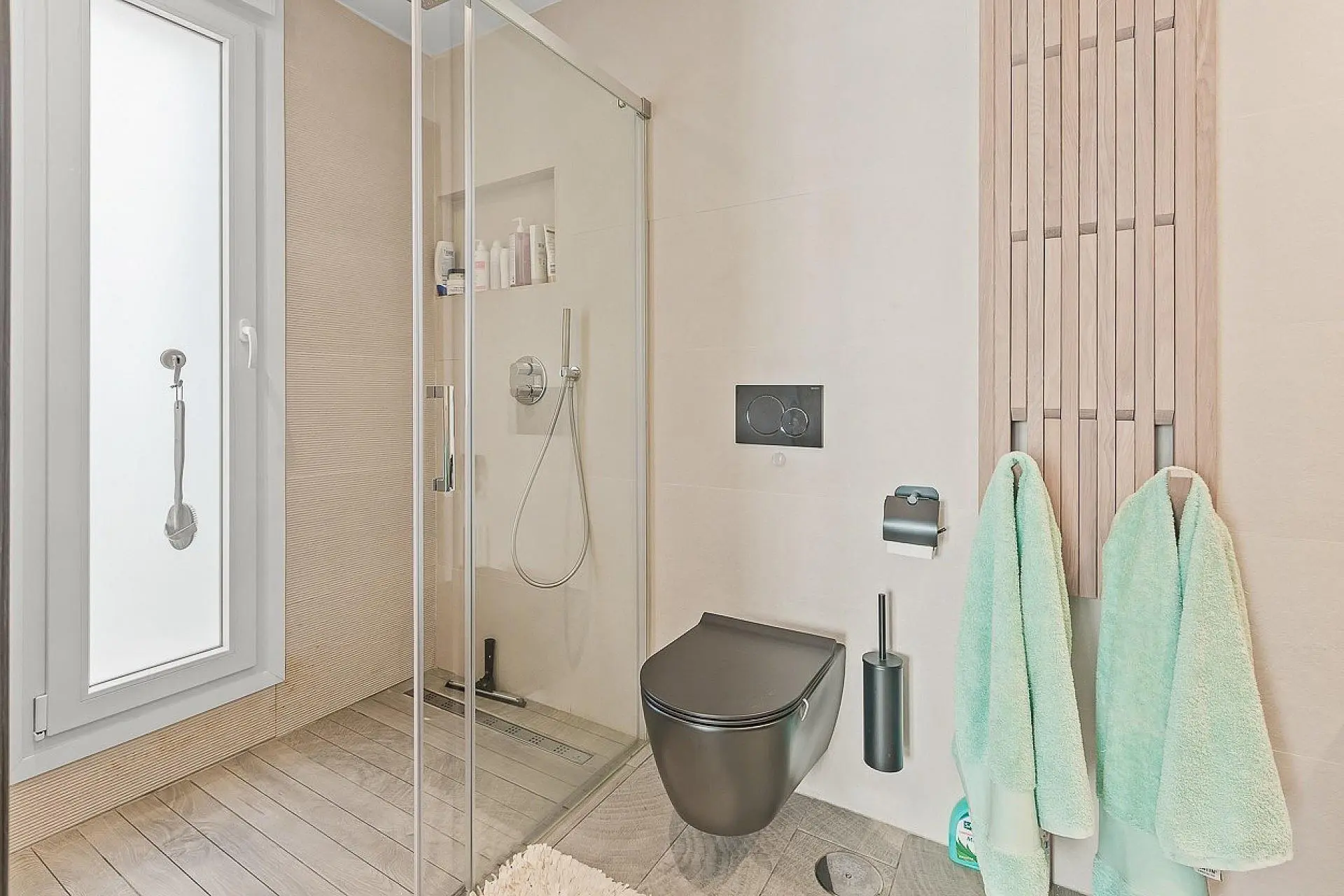 The villa offers 3 spacious bedrooms, 2 sleek bathrooms with underfloor heating, a guest toilet, and an open-plan living area filled with natural light. A third room is currently used as a dressing room or office but can easily be converted into an extra bedroom.