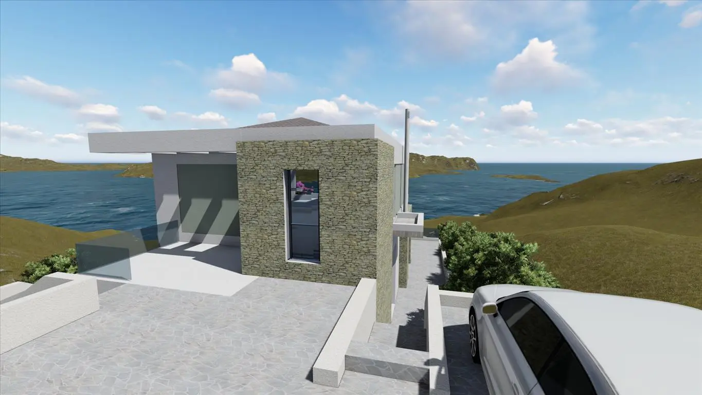 The ground floor includes one bedroom, a living room combined with a kitchen, and a shower with a WC. This space provides a practical layout, ideal for daily living or vacationing. The living area allows for easy access to various amenities without compromising personal space.