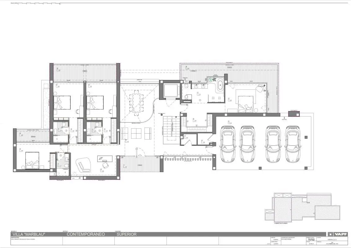 The modern architecture of the villa is characterised by clean and elegant lines that harmoniously integrate with the surroundings. The design is distinguished by its geometric volumes and extensive glazed surfaces that maximise the entry of natural light, offering spectacular views from every angle. The terraces, distributed across different levels, create ideal outdoor spaces to enjoy the Mediterranean climate. The combination of natural materials such as stone and wood, along with modern finishes in neutral tones, enhance the sophisticated and timeless character of this villa. The infinity pool, strategically located in front of the main living room, merges with the horizon, creating a spectacular focal point.