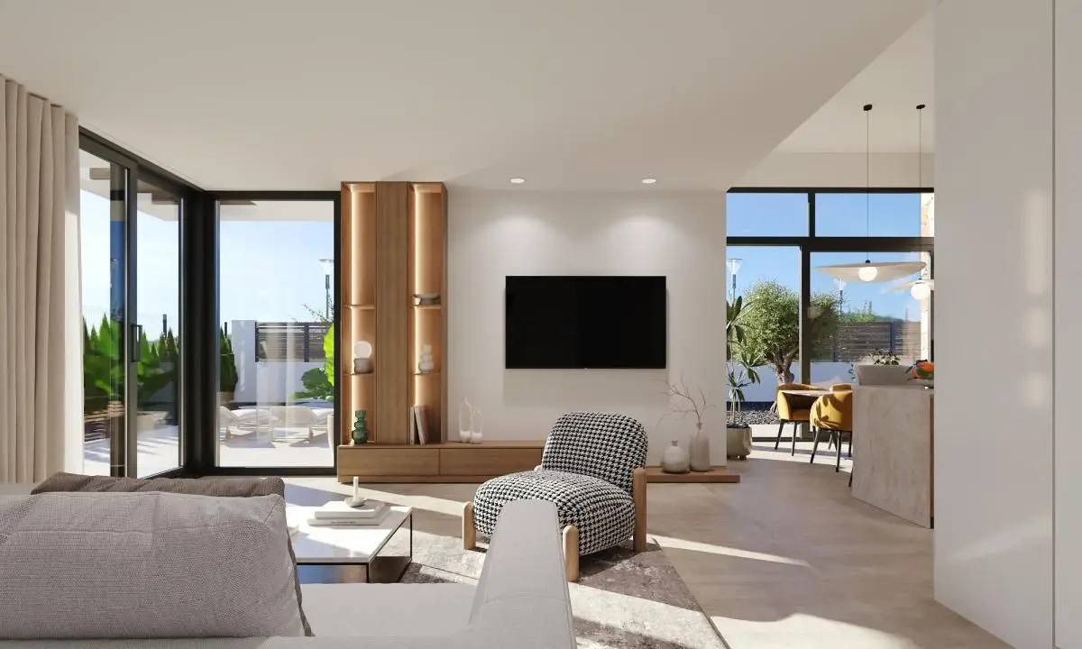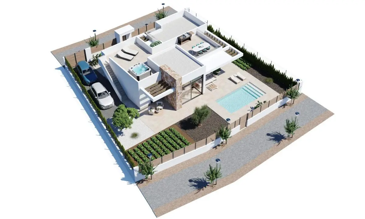 Modern Homes in a Natural and Exclusive Setting~Discover these fantastic new construction villas in a prestigious gated residential community that combines tranquility, security, and a comprehensive array of services. Surrounded by nature and with a privileged climate, this complex is ideal for those seeking a relaxed lifestyle without compromising comfort.~~Advantages of a new building Villas Maria~~Three-Bedroom Villas on One Floor with Solarium~The residential area consists of 39 villas on plots starting from 436 m2. All homes feature three bedrooms and two full bathrooms on a single floor, along with a terrace area with a private pool and a private rooftop solarium with views of the golf course.~~High-Quality Finishes and Guaranteed Comfort~The homes are designed with high-quality materials and aimed at offering energy efficiency and well-being:~Exterior carpentry with thermal break~Hot water through aerothermal system~Pre-installation of ducted air conditioning~Private pool~Independent irrigation water installation with accumulator tank and individual pressure group, with irrigation outlets in the garage and garden.~Motorized vehicle access door.~~A Resort with Complete Services and Golf Course~The complex is one of the most comprehensive in Costa Cálida. It includes:~Professional 18-hole golf course~Hotel with spa~Supermarket~Restaurants and bars~Sports facilities and green areas~24-hour security~~The development recreates the ambiance of a traditional Mediterranean village, with quiet streets and meticulous design.~~Life in the city Fuente-Álamo~~Strategic Location Near Everything~International Airport: 20 km~Additional golf courses: less than 10 km~Cartagena: 35 km~Beaches of Mar Menor: 30 km~Mediterranean Space Shopping Center: 28 km~Puerto de Mazarrón: 40 km~~Live Stylishly on the Costa Cálida~These villas represent an excellent opportunity to live or invest in one of the fastest-growing areas of Murcia.~~Contact us now and discover your next home in this beautiful resort.