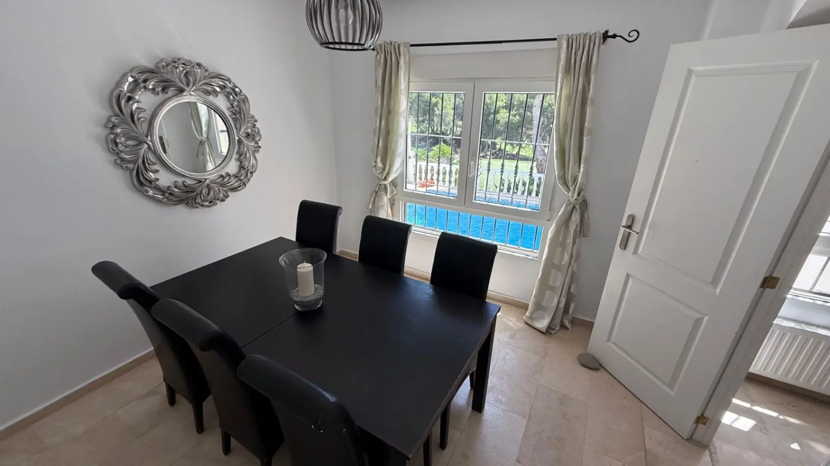 The villa has been maintained to a high standard. It includes a private swimming pool, a garage for vehicle storage, and a roof terrace that provides an elevated outdoor space.