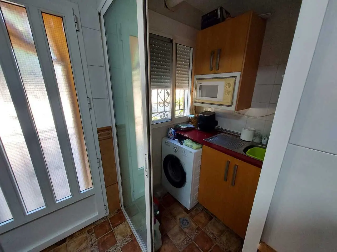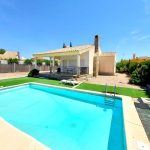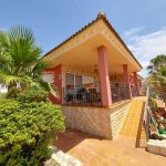 The house itself comprises three bedrooms and two bathrooms. It includes a living room that receives ample natural light and a fully equipped kitchen. A covered terrace provides an area for outdoor seating and dining. The property also benefits from a private swimming pool.