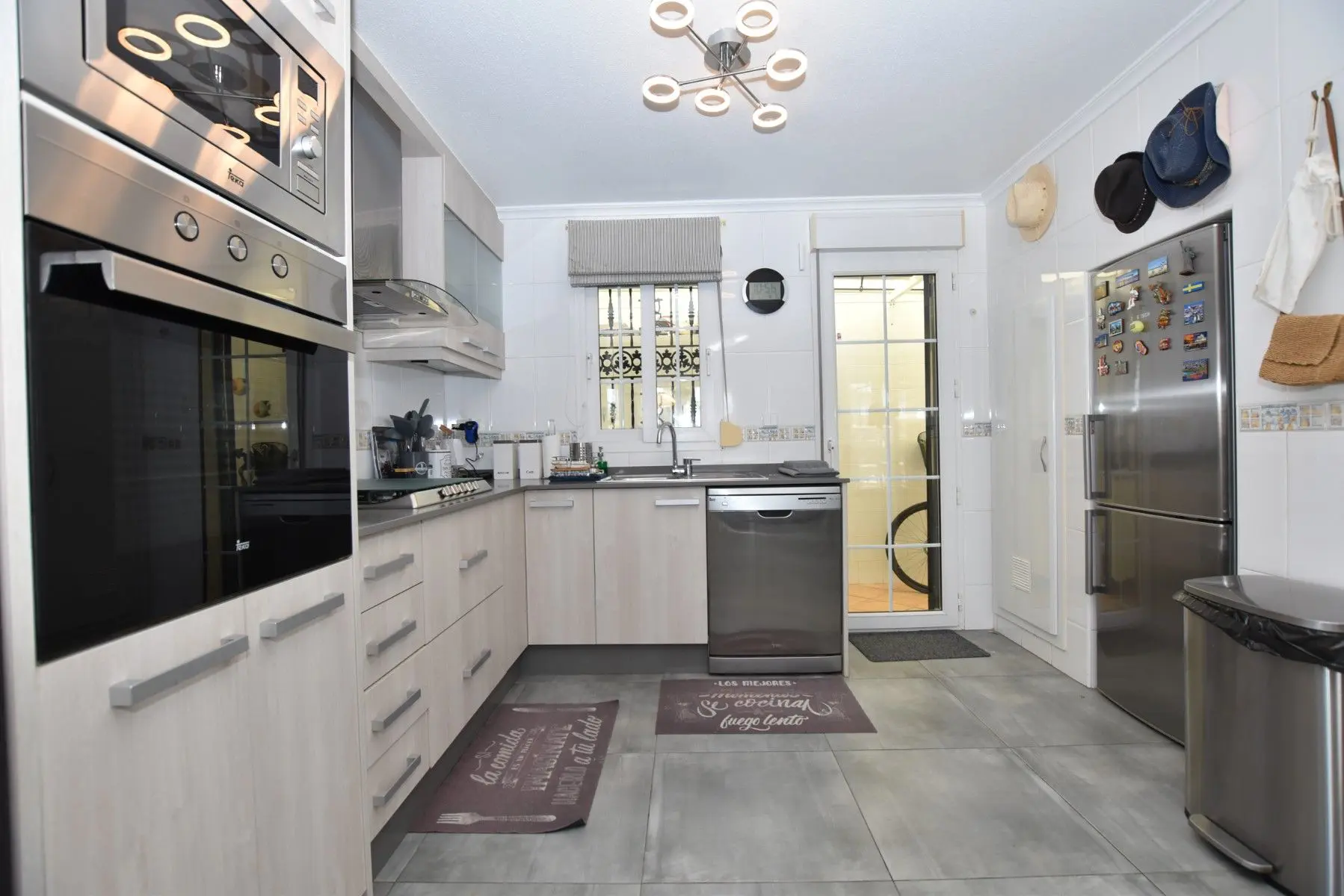 Internally, the villa is laid out to offer a functional living space. It includes additional storage solutions, a dedicated utility area, and benefits from abundant natural light. Its location offers convenient access. La Zenia Boulevard is within walking distance, and other amenities are nearby. The nearest beaches are a short drive from the property.