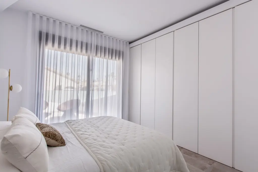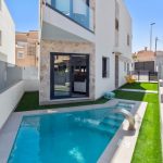 For sale new villa in Los Altos, Orihuela Costa, Costa Blanca, SpainNew residential complex is made up of semi-detached villas. Each property is built on one floor and solarium. There are 3 bedrooms (2 en suite), 3 bathrooms, living room, kitchen open to the living room with large windows and access to a large semi-covered terrace and pool.Los Altos is a great place of Orihuela Costa for holidays and permanent residence. Everything you could possibly need is within easy reach, including commercial center, supermarkets, banks, dentist etc., all served by a regular bus service. The beaches of Punta Prima, Punta Prima is 5-7 min drive, which are some of the cleanest around and have been awarded Blue Flag status, are complemented by a wonderful promenade with shops, boutiques, bars and restaurants.