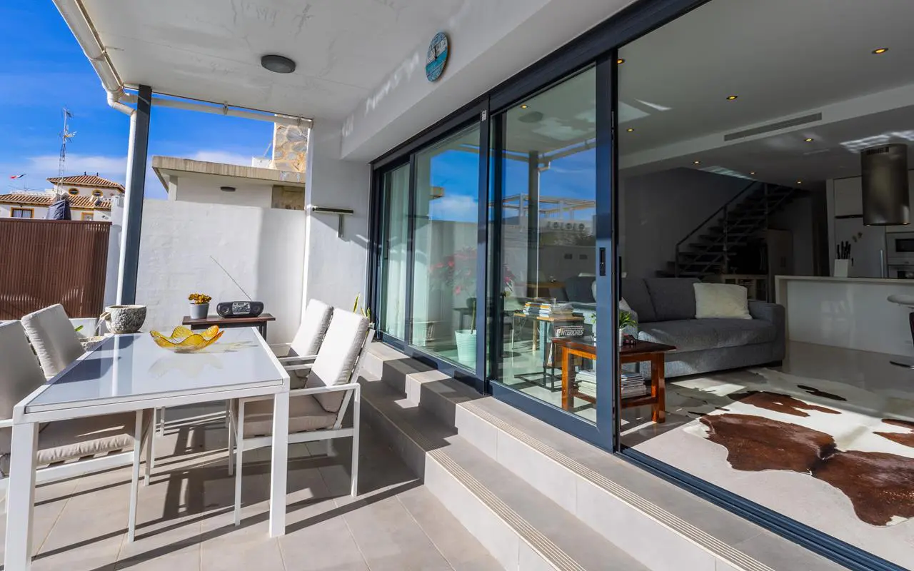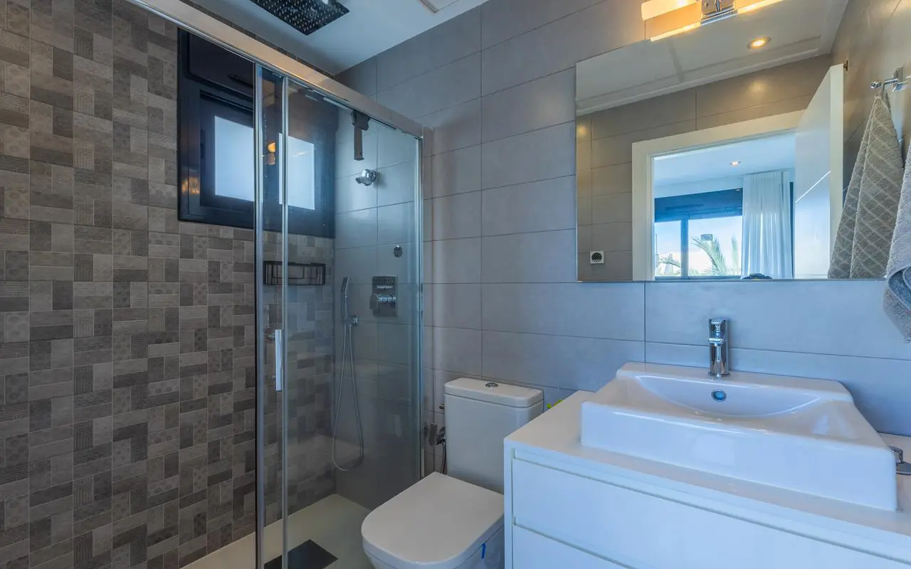 This is a recently constructed detached villa located in the Lomas de Cabo Roig area of Orihuela Costa. Built in 2018, the property sits on a 300 square meter plot within a residential neighborhood known for its year-round residents and green surroundings.