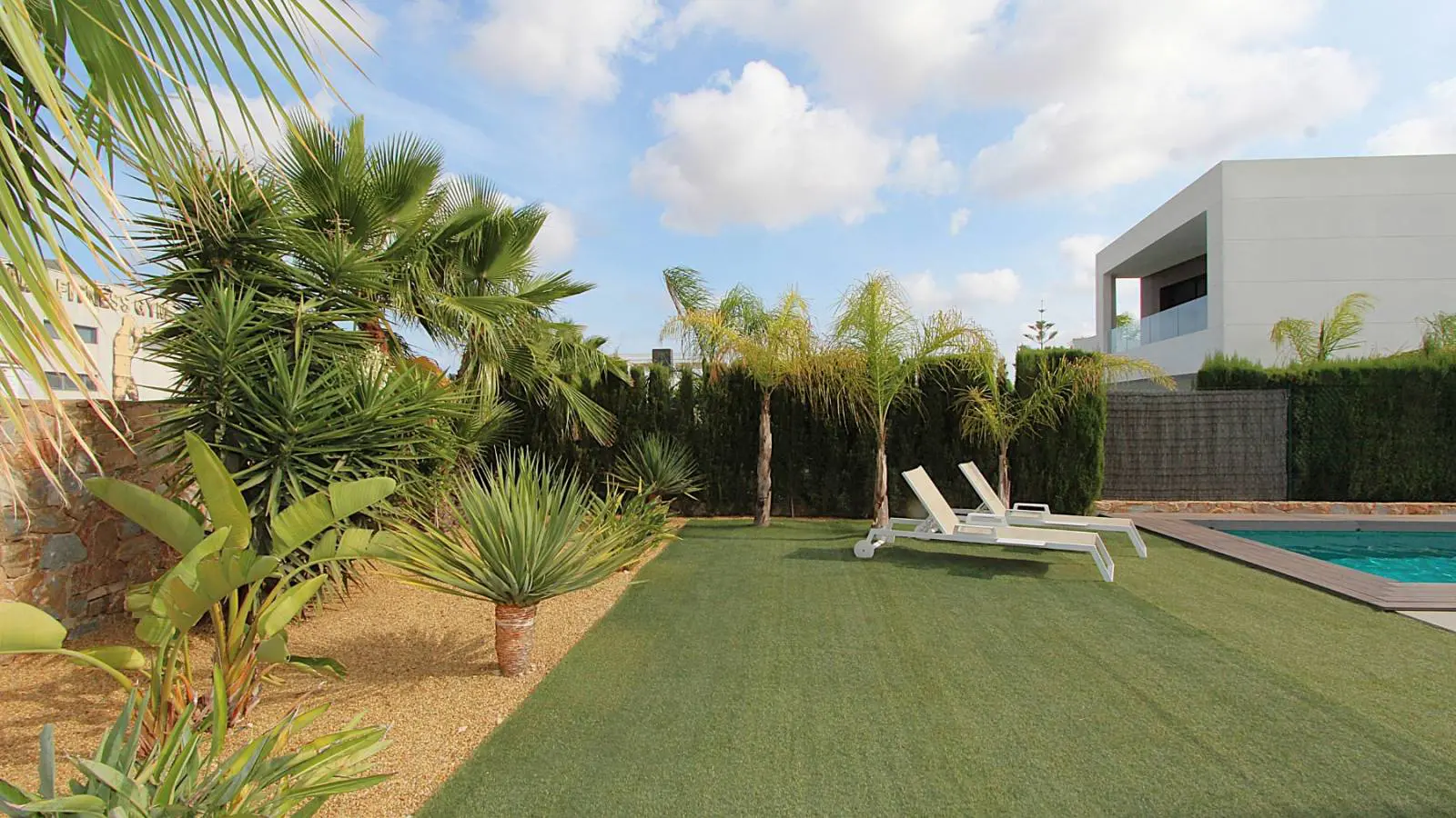 Luxury living on the Costa Blanca: modern villa with 3 bedrooms, large swimming pool and tropical garden for sale.Discover this spectacular modern villa on the sunny Costa Blanca, Spain, available to move into immediately. Set on an extensive plot of 530 m², this contemporary designed property offers everything you need to enjoy Mediterranean living to the full. The villa is for sale fully furnished, allowing you to enjoy your new home from day one.With three spacious bedrooms and three elegant bathrooms, this villa guarantees comfort and privacy for you and your guests. Each room has been meticulously designed with high quality materials and modern finishes, creating a harmonious and luxurious living environment (one of the bedrooms is located on the ground floor, with an en-suite bathroom).The real highlight of this property is its stunning private swimming pool, ideal for relaxing and enjoying a refreshing dip on warm summer days. The surrounding garden offers ample space to relax, sunbathe and enjoy the outdoors. There are also perfect areas for outdoor entertaining, so you can spend long summer evenings with family and friends.The villa is located in a quiet and safe area, with easy access to beautiful beaches, shops, restaurants and all the amenities that the Costa Blanca has to offer.For golf enthusiasts: The prestigious La Marquesa golf course in Ciudad Quesada is less than 2 km from the villa.Don’t miss this unique opportunity to acquire a luxury villa in one of Spain’s most desirable regions. Contact us today for more details or to arrange a viewing.