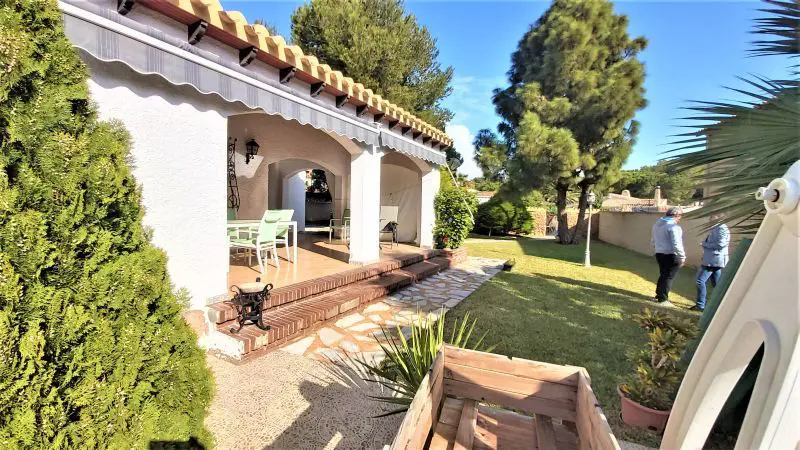 Detached villa of Mediterranean design located in the quiet residential area of Punta Prima, 300 m from the beach, 1.5 km from Zenia Boulevard Shopping Center, 3 km from the Orihuela Costa Golf Courses and 3 km from Torrevieja city. The house has a plot of 936 m2 with centuries-old pines, very well maintained garden, clean, well-kept and functioning pool, 40 m2 porch, large living room with separate dining room and kitchen, fireplace, gallery, 4 bedrooms and 3 bathrooms in total; Bedroom in attic suite on the upper floor. Housing very well built and very well maintained, with “eighties” charm. Although most of the materials have been partially refurbished, the owners maintain it very well and are prepared to live all year.