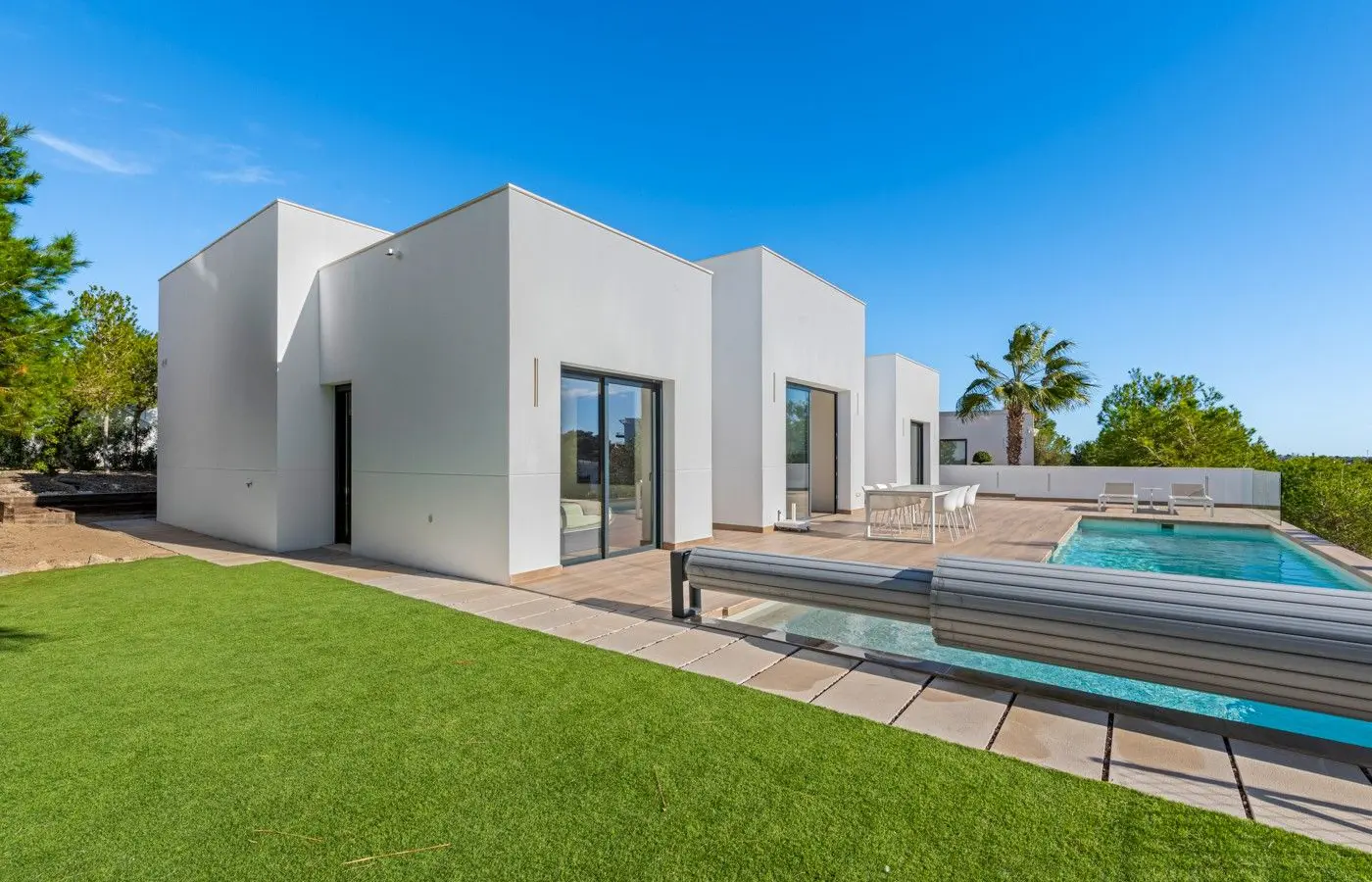 Located in the prestigious Las Colinas Golf & Country Club, one of the most exclusive resorts on the Costa Blanca, this breathtaking villa offers the perfect blend of modern design, high-end finishes, and ultimate living comfort. Designed to maximize enjoyment of the sun and nature, the villa features a southeast orientation and expansive windows that provide panoramic views of the lush surroundings. Upon entering, you are welcomed into a spacious and bright living area, where elegance and functionality blend seamlessly. The open kitchen, equipped with high-quality built-in appliances, flows effortlessly into the stylish living room—a perfect space to unwind in luxury or entertain guests in a sophisticated setting. Villa Layout The villa boasts an impressive master suite on the ground floor, complete with a spacious walk-in dressing room and a luxurious en-suite bathroom. Additionally, this level features two extra bedrooms, sharing a modern bathroom. Each of these rooms offers peace and privacy, with direct access to the outdoor spaces and stunning natural views. In the lower level, you will find an exclusive studio, ideal as a guest retreat or for added privacy. The studio includes a spacious bedroom, a stylish bathroom, and a private wellness area—a sanctuary where you can fully relax and recharge. Outdoor Living & Technology The southeast-facing garden is designed for ultimate outdoor enjoyment. The heated private pool invites you for a refreshing swim any time of the year, while the expansive terraces provide the perfect setting for long summer evenings. This villa is equipped with the latest modern technologies, including a smart home automation system, allowing you to easily control lighting, climate, and security. The Airzone climate control system ensures perfect indoor comfort in every room, while the automatic shutters provide extra convenience and privacy. Additionally, solar panels make this home more energy-efficient and sustainable. For your convenience, the villa offers a private parking area for two cars, ensuring a safe and comfortable space for your vehicles. Moreover, the property is fully furnished, including luxurious furniture worth €30,000—every detail is meticulously finished and ready for immediate move-in. Living in Las Colinas Golf & Country Club means enjoying a top-tier lifestyle. In addition to its award-winning golf course, the resort offers various sports facilities, fine dining restaurants, and a serene, secure environment. Furthermore, the stunning sandy beaches of the Costa Blanca are just a short drive away, allowing you to experience the best of both worlds—tranquility and exclusivity, with the Mediterranean Sea within easy reach. Are you looking for a luxurious villa with space, privacy, and an exceptional location? Contact us today to schedule a viewing and experience this unique living opportunity for yourself!