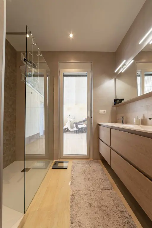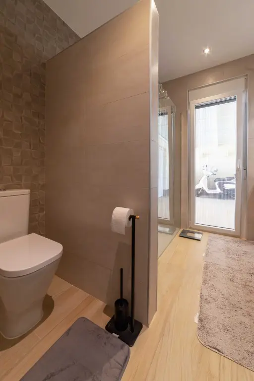 The villa boasts a large terrace measuring 150 m². This outdoor area is adjacent to a sizable pool, measuring 10 x 4.5 m, offering a space for relaxation and recreation. Close to the pool, a jacuzzi and an outdoor shower with hot water help enhance the outdoor experience. For parking needs, a large carport provides protection for vehicles against sun exposure, important for those warm summer days.