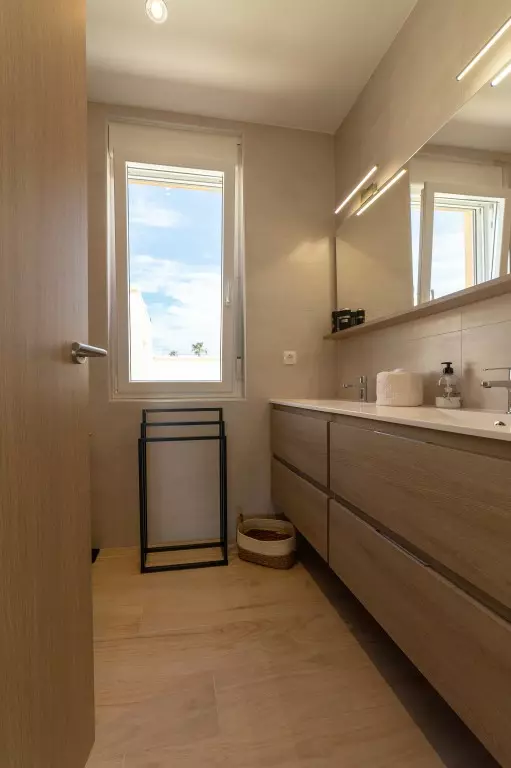 The property boasts two expansive terraces, ideal for outdoor activities, with a total area of 150 m². A significant highlight is the large pool, measuring 10 x 4.5 meters, along with a jacuzzi and an outdoor shower equipped with hot water. For vehicle parking, a spacious carport provides protection from the sun, enhancing the usability of the outdoor space during hot summer days.