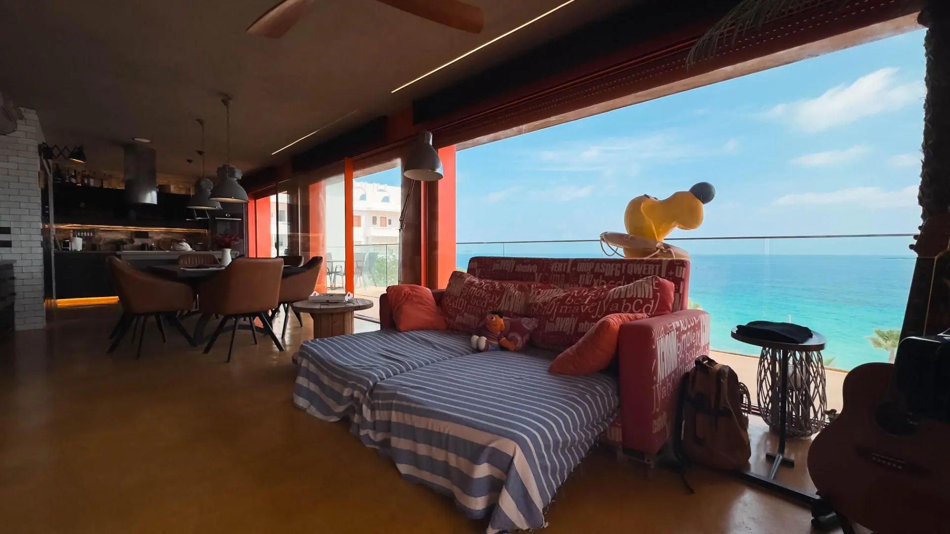 Situated at Playa del Tio Roig, the property has undergone a complete renovation. Its design features a façade inspired by vibrant shipping containers, which reflect the essence of the ocean. This eye-catching architectural choice enhances the charm of the property and contributes to its overall appeal.