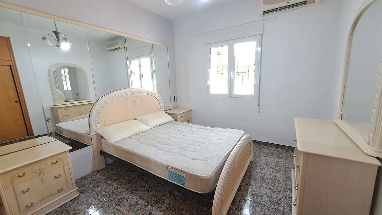 We present this villa located in Villamartin. When we enter into this property we can find a huge living room with fireplace. This living room is connected to the dining room. And from there we go to a open kitchen with laundry room. There is a long corridor where we find four of the bedrooms with wardrobes, and two bathrooms which one of them has bathtub. Upstairs we find the fifth bedroom and a big solarium with sea views. This property is perfectly located as it has many bars, shops and supermarkets walking distance. And also has Campoamor and Ramblas Golf courses only 10 minutes walking.