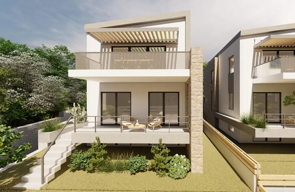 A magnificent view of the sea opens up from the windows. There are: solar panels for water heating, heating. Extras included with the property: parking space, garden.