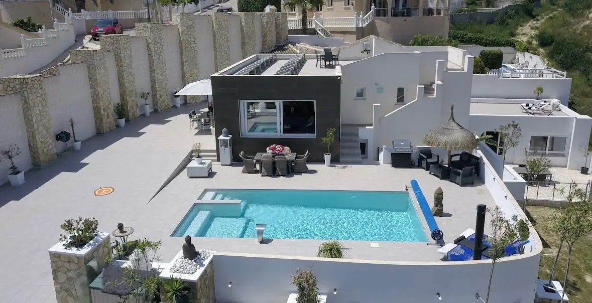 ~Private pool with integrated jacuzzi Large 120m2 solarium with panoramic views Spacious patio with outdoor dining area Fully landscaped garden