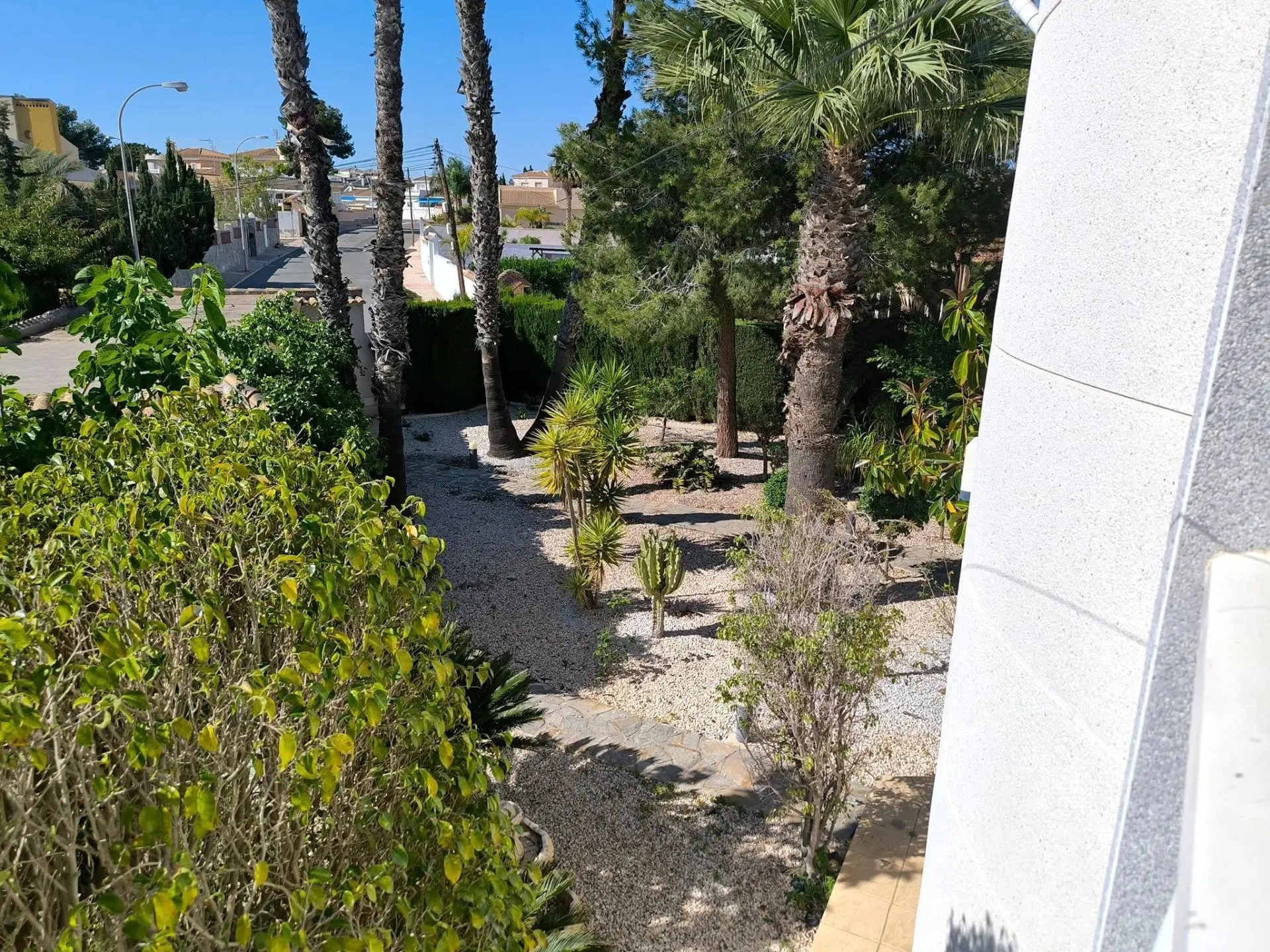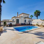 For sale is a large family 4-bedroom villa with a salon and a separate office, built on a plot of 1,100 m2 with a private pool 10 x 8, a summer separate, fully equipped kitchen with a terrace and an old subtropical garden: pine trees, palm trees, cacti, pomegranate and lemon trees, ficus and roses. On the plot there is an entrance gate with a covered parking, entwined with ivy for 2 cars. The villa is located in the Chaparral – La Siesta area of Torrevieja on Flecha Street. This is a quiet and environmentally friendly area of villas with large plots and subtropical gardens. Distance to the central beach of Torrevieja and the Mediterranean Sea – 5 km. The villa is built on 2 floors, has 220 m2 of total and 180 m2 of living space. On the ground floor of the villa there is an oval terrace with large windows, connected to the 50 m2 living room. From the living room there is a door to the 1st guest bedroom and a spacious study with a fireplace with a set of sofa furniture made of genuine leather. From the living room we also pass into a separate, fully equipped and furnished kitchen. From the kitchen there is a door to the house area… to the garden. An illuminated staircase with railings goes up to the second floor. On the second floor of the house there are 3 bedrooms: a double bedroom of 26 m2 with an exit to the balcony, a children`s bedroom of 14 m2 and a 4th bedroom-lady`s study with an exit to the balcony. The villa is sold fully furnished, with all appliances, with central air conditioning, heated floors throughout the house, with decor, curtains, dishes. The price in the “come and live” format is 550,000 euros.