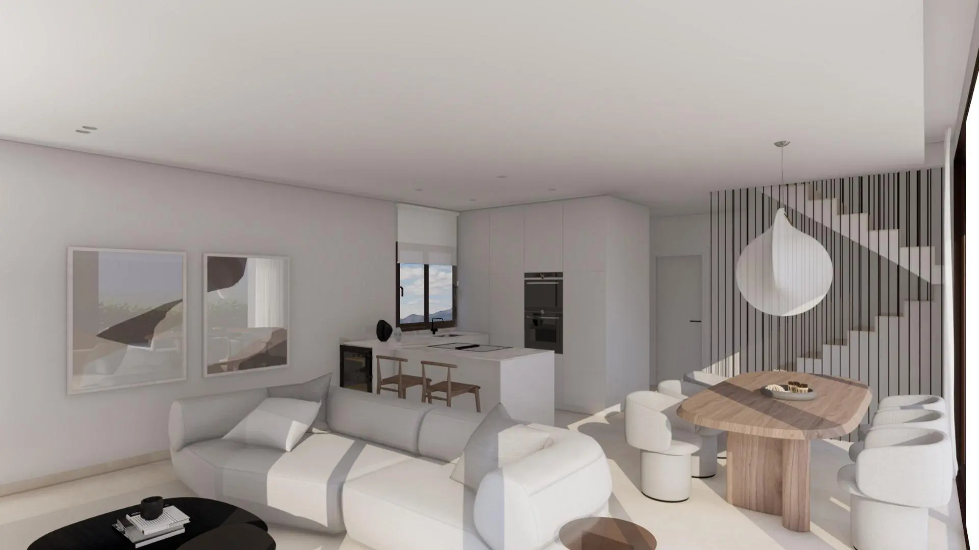 Modern Villas for Sale in the Heart of Costa Blanca, Alicante Discover a stunning new development of 14 modern villas located in the province of Alicante on the beautiful Costa Blanca. Nestled between Benidorm, Finestrat, and the iconic Puig Campana mountain, these villas offer breathtaking views of the sea and are situated near the newly developed Puig Campana Golf course. With a short 10-minute drive to some of Spain`s most prestigious beaches, these properties provide an unmatched lifestyle in a tranquil yet accessible setting. Prime Location Close to Beaches and Amenities These villas are perfectly positioned just a few kilometers from the bustling city of Benidorm, known for its vibrant nightlife, golden beaches, and family attractions like Terra Mítica theme park, just 5 km away. Finestrat, only 4 km from the property, offers charming streets and panoramic views, making it an ideal escape for a peaceful afternoon. Alicante’s international airport is conveniently located just 40 km away, allowing for quick and easy travel, with an approximate drive time of 25 minutes. World-Class Golfing Experience Golf enthusiasts will love the proximity to two prestigious golf courses. The newly opened Puig Campana Golf, a 9-hole course, is just 1 km away, offering stunning views and a challenging design. Villaitana Golf, situated 6 km away, features two exclusive Nicklaus Design courses: Levante Golf Course, an 18-hole American-style course with wide fairways and challenging obstacles. Poniente Golf Course, a technical 18-hole course perfect for golfers seeking a more compact layout. Modern Design and Luxury Features Each villa is designed with a modern aesthetic, combining sleek elegance with functionality. Featuring private pools, parking spaces, terraces, and solariums, these villas offer everything you need for both relaxation and entertainment. Select units also include a basement, adding extra space for personalized living areas. Enjoy life on the Costa Blanca, with easy access to Benidorm, Finestrat, and Alicante. These villas provide the perfect blend of luxury, modern architecture, and prime location, making them ideal for both holiday homes and year-round living.