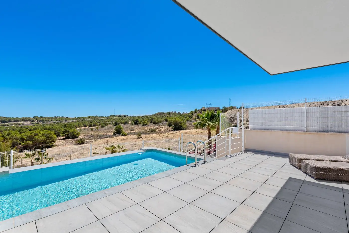 Living in all luxury, a gated community, beautiful views and a second guest house in the basement, perfect for large families or do rentals. Come see this recently completed, virtually new home in Altos de San Miguel de Salinas. A beautiful detached villa with infinity pool, stunning views over the skyline of Torrevieja and Laguna Rosa, the salt lake of Torrevieja. A real eye-catcher for lovers of space, luxury and tranquility. The house is divided into two levels. The first floor is separate, but also combined to reach through an extra porch.