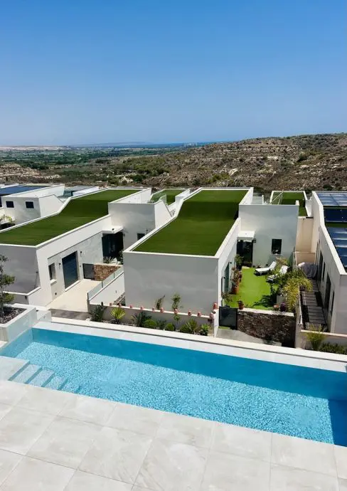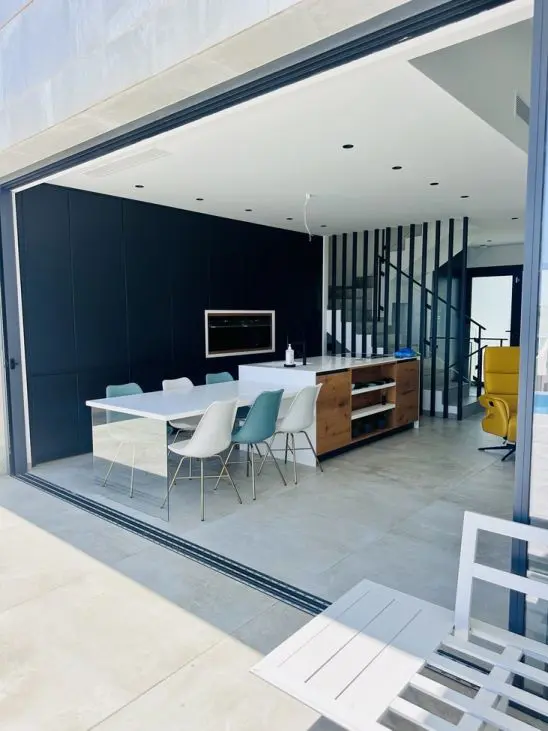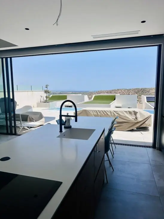 ✨ Exclusive Frontline Villa with Sea Views, Privacy & Premium Finishes Discover this stunning frontline villa, located within an exclusive boutique residential project of only 30 high-end homes. This exceptional property offers breathtaking sea views combined with privacy, comfort and luxury living. Spread over three levels with approximately 300 m2 of living space, the villa features 4 spacious bedrooms and 5 modern bathrooms. Enjoy outdoor living with a heated private swimming pool, multiple terraces with ideal sun orientation, and beautiful open views. Additional highlights include:✔️ Private garage with charging point✔️ Sauna✔️ Multi-purpose room (gym, office, guest room, etc.)✔️ Solar panels✔️ Alarm system✔️ First occupancy in 2021 – never rented Ideally located in a quiet residential area, just 5 km from the beach, 1 km from golf courses, shops and restaurants, and only 30 km from the airport. Perfect as a permanent residence, luxury holiday home or investment opportunity.
