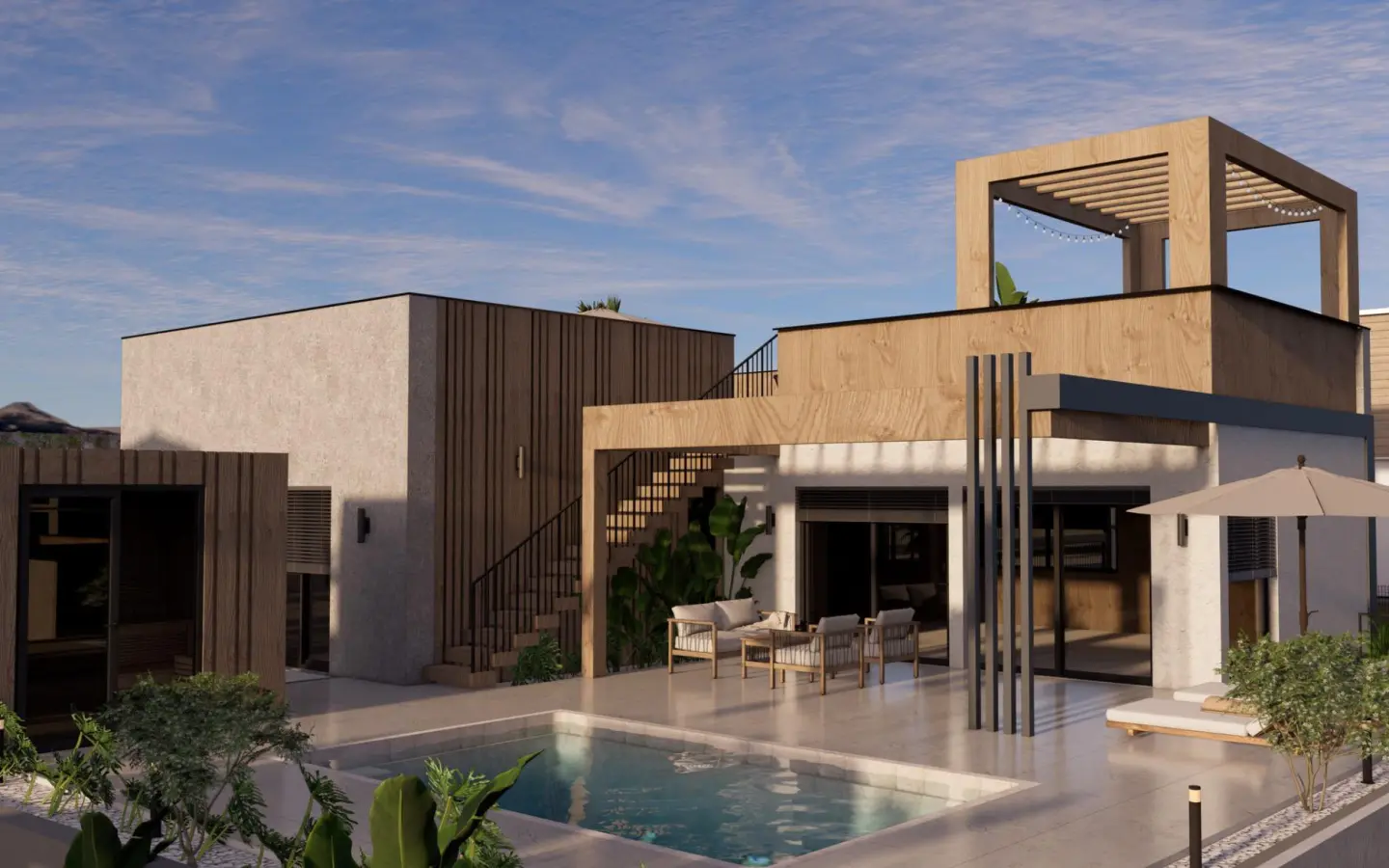 A well-known European developer wants to please us with a truly interesting project. The good size and planning of the house combined with eco-friendly technologies result in an excellent outcome. A combination of eco-minimalism, Scandinavian style, and vibrant Spanish atmosphere is exquisitely reflected in this house. A total of six villas are being built on plots of 438 square meters. The usable area of the residence is 194 square meters, distributed across two floors.