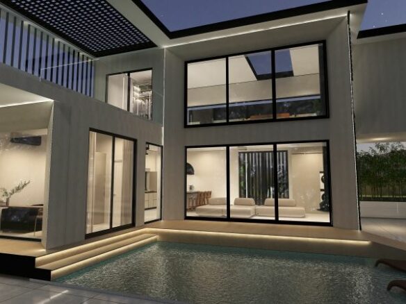 The villa features large windows that provide expansive views of the city, the sea, and the mountains. These vistas can enhance the living experience, making each day unique.