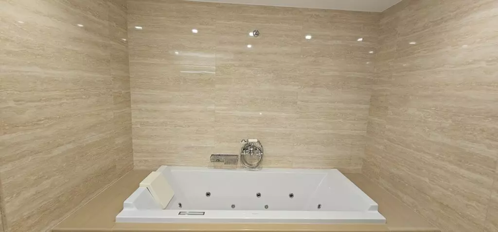 The ground floor includes a living room adjacent to the kitchen, offering a comprehensive space for daily activities. In addition to this, there is one WC, which adds convenience to this level of the villa.