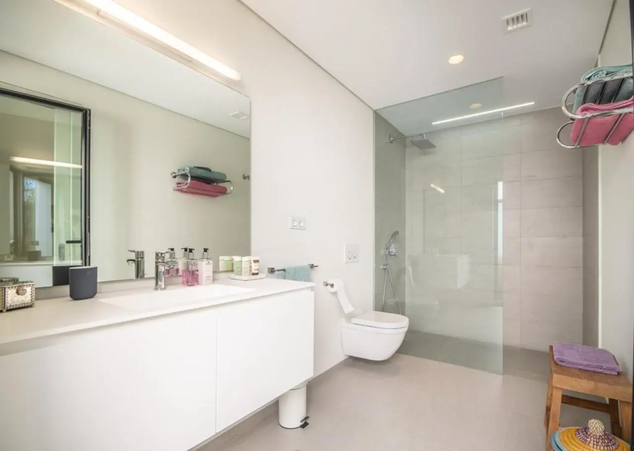 This stunning and spacious 4 bedroom detached villa is on a fantastic large private plot in Las Colinas Golf and Country Club, the most exclusive and prestigious golf resort in Costa Blanca with a driving range, 24 hour security, a shop and a choice of restaurants on the resort itself. This immaculate modern villa is cleverly divided into 4 areas connected by a hallway with huge windows. In one area you will find an open plan sleek kitchen and dining area, storage and washing room as well as a handy loo for guests.The living room offers gorgeous views towards the terrace, large well maintained garden and swimming pool. From the living room you have direct access to the terrace. On the ground floor you will find 3 double bedrooms, each with their own private en-suite bathroom. On the first floor you have the benefit of privacy from guests with only the impressive master bedroom with en-suite bathroom.This property has to been seen to be fully appreciated, and is light and bright with the huge windows taking advantage of the fabulous views. For your comfort and enjoyment all year round, this highly desirable villa comes with fully integrated hot and cold air conditioning throughout, as well as the great benefit of the swimming pool being heated! Within a 15 minute drive of a range of other perfectly maintained golf courses such as Campoamor, Villamartin and Las Ramblas and nearby blue flag beaches, at Cabo Roig, La Zenia and Playa Flamenca to name a few and the American-style open air shopping mall Zenia Boulevard which is open from 10am -10pm all year round.