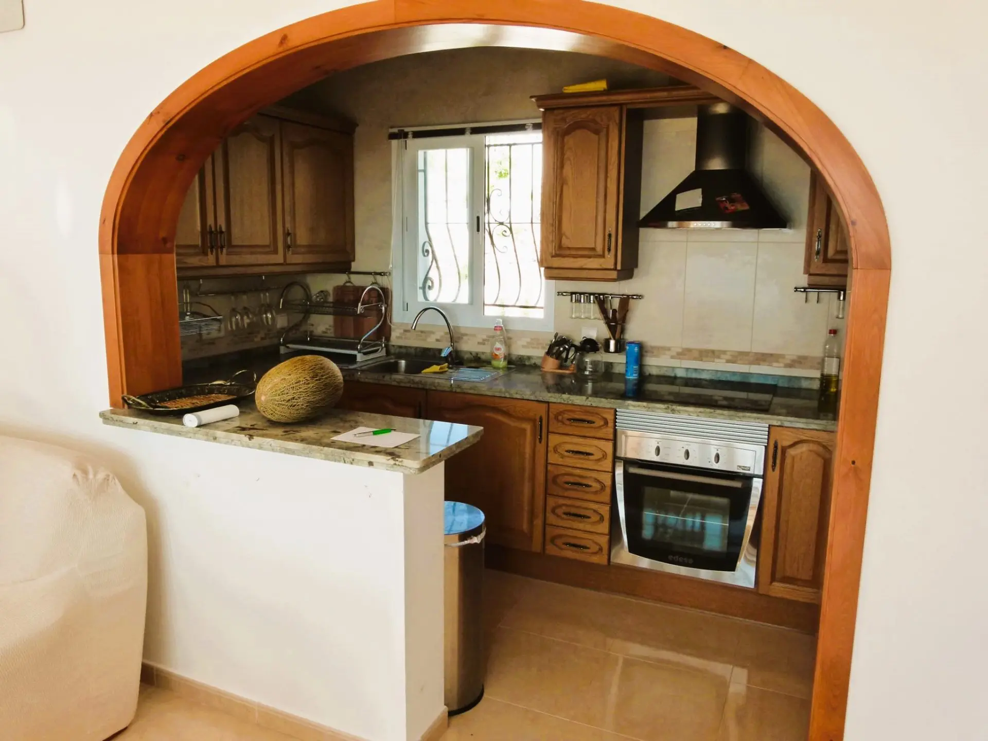 Relish in the tranquility of this wonderfull villa with it’s stand-out feature, the astonishing close view of the shimmering blue sea, a breathtaking feature indeed. The villa is south-east facing, so you can enjoy those wonderful sunny views on the beautiful open terrace, while you’re having a swim in the pool or testing you’re cooking skills on the barbecue. If we step into the villa, we find an entrance hall, to the left is 1 double bedroom with an ensuite, the ensuite has a bath and a shower, it also has direct access to the terrace. To the right of the entrance hall, we find a guest toilet, the open kitchen with an induction hob and oven, an office space and a spacious dining/living room with a cozy fireplace, this room opens up to the large terrace with stairs going down to the pool area. Going down the stairs in the villa, we find the 2 other bedrooms both with access to the terrace, and a bathroom with a shower. All the bedrooms of this villa are equipped with built-in wardrobes and all have access to the terraces, the windows have double glazing and shutters. The garden is easily maintained with irrigation and it has some beautiful fruit trees. It has a very big basement and a storage room. The villa has a water cleaning system and has 24 solar panels on the roof. You may be able to expand the property with permission granted.