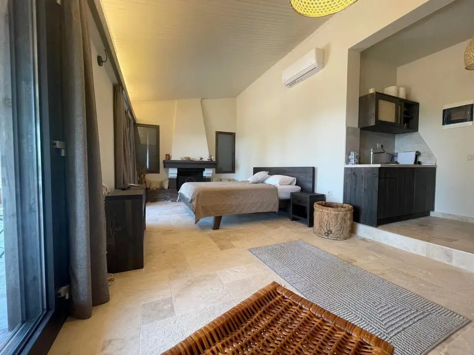 On the first floor, you’ll find an additional two bedrooms and another living room. This level also has a combined kitchen and living room area, alongside three shower/WC units. This arrangement offers privacy and additional space, perfect for accommodating guests or family members.