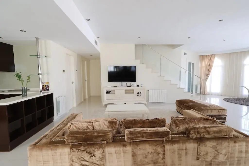 Ciudad Quesada Detached villa model Lucia Especial with a plot of 700 m2 in front of a park with a house on two floors plus basement with an area of 355 m2, with 5 bedrooms and 4 bathrooms. The house is structured in a basement with 145 m2 and has a Turkish bath (Haman), sauna relaxation area, bathroom, bedroom, cinema area, billiards and table football. The ground floor has 145 m2 and has 2 bedrooms, bathroom, kitchen and large living room with fireplace. The upper floor with 65 m2 has 2 bedrooms, 2 bathrooms, 2 terraces with views of the sea and the lagoons. The house is sold furnished and has a large heated swimming pool, Jacuzzi and barbecue area with outdoor kitchen, also, driveway with pergola.