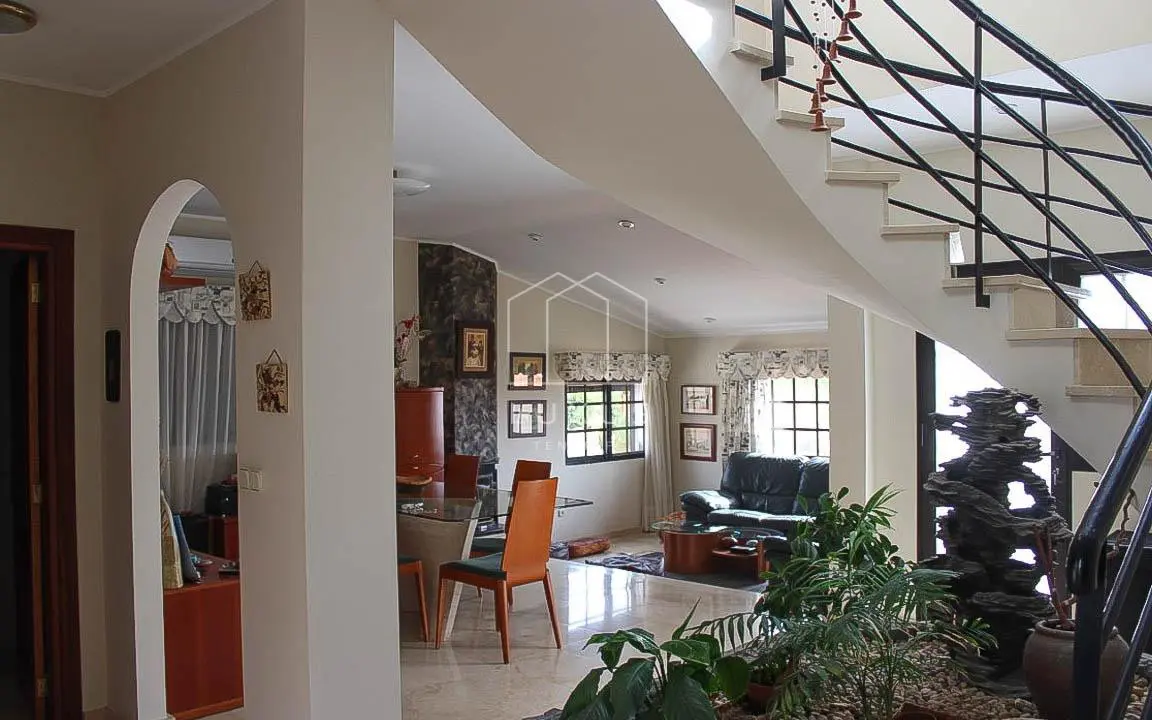 The house features a separate, fully equipped kitchen and a large, light-filled living area, with an internal staircase linking both levels. Comfort is ensured year-round with air conditioning, and the property is further complemented by a security alarm system.